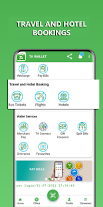 TA Wallet은 사용자가 온라인 거래를 수행할 수 있는 무료 디지털 지갑입니다. 이 현금 없는 결제 시스템은 무료 충전 및 PhonePe.